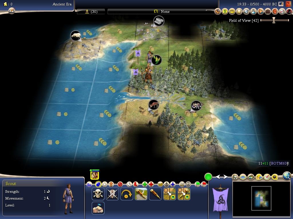 - Options: No goody huts, no random events, no barbarians