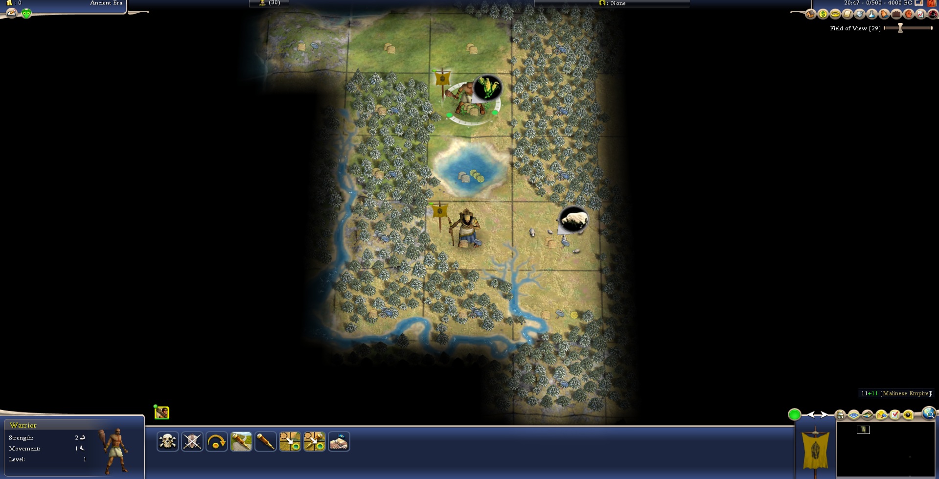- Options: Raging barbarians, no tech brokering, no vassal states, no goody huts, no random events